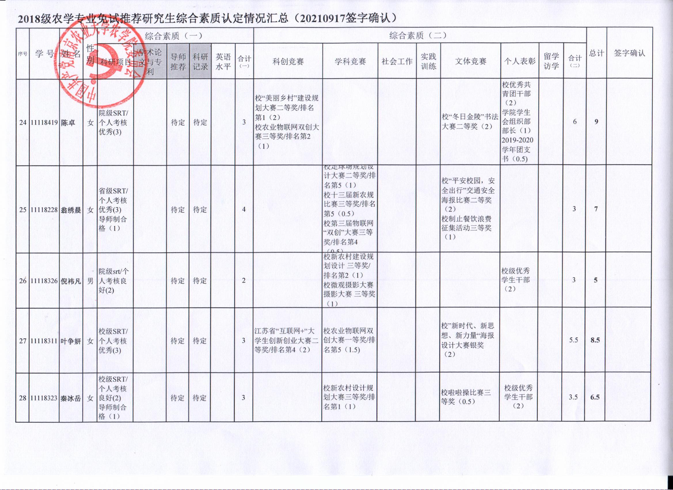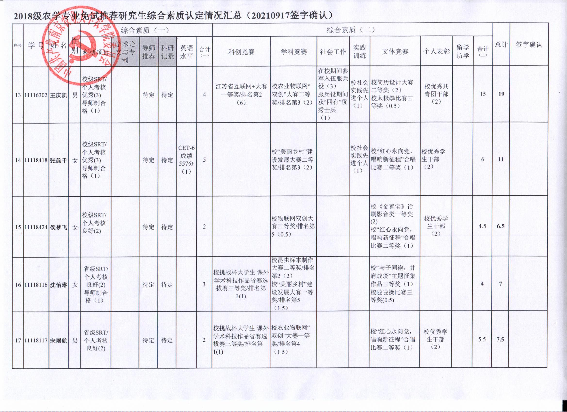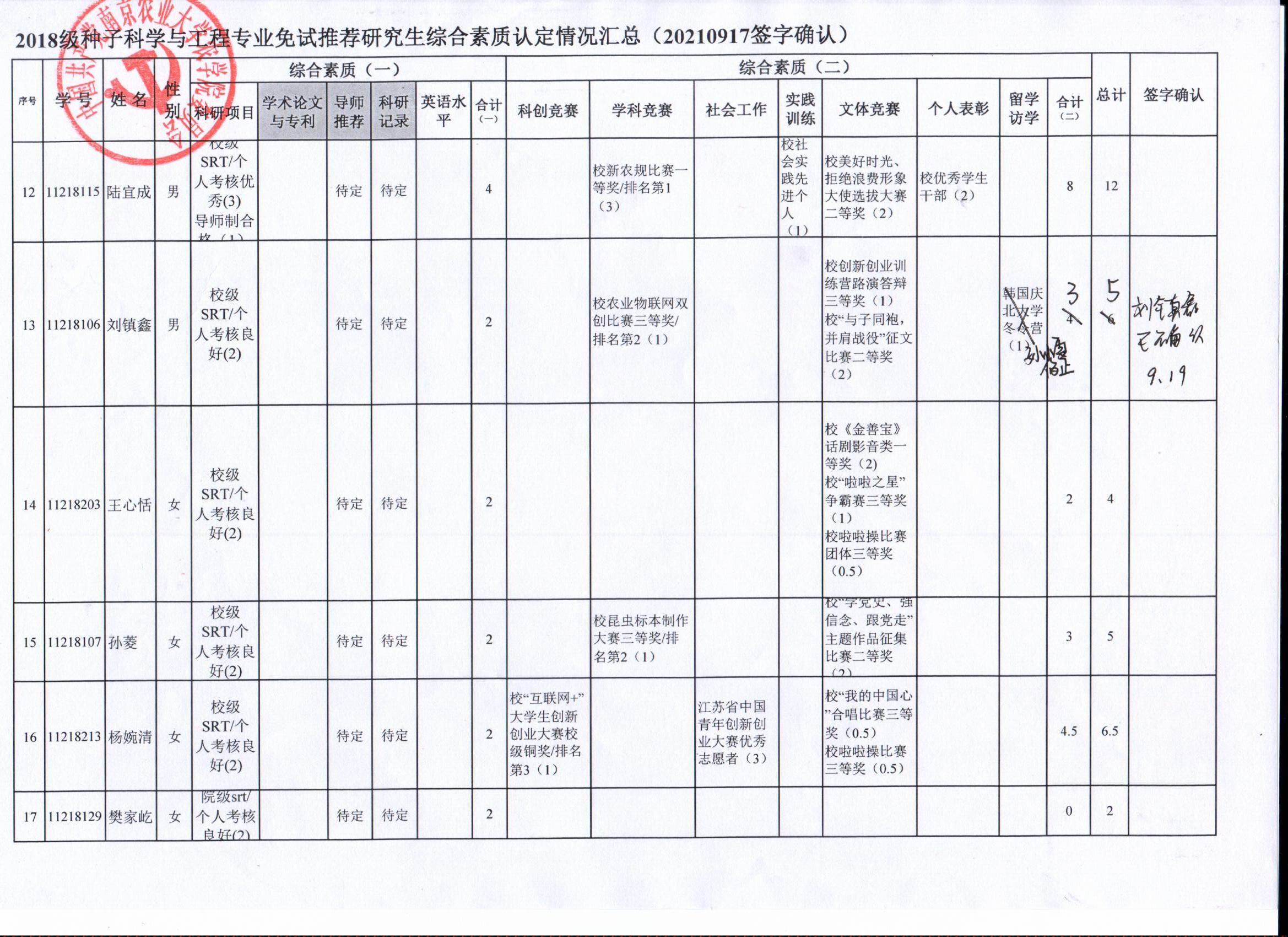 以上结果,如有疑义,请于9月24日下午17:00前,以书面形式反馈至海角社区 学生办(生科楼D1002),联系人:孙老师025-84395327。