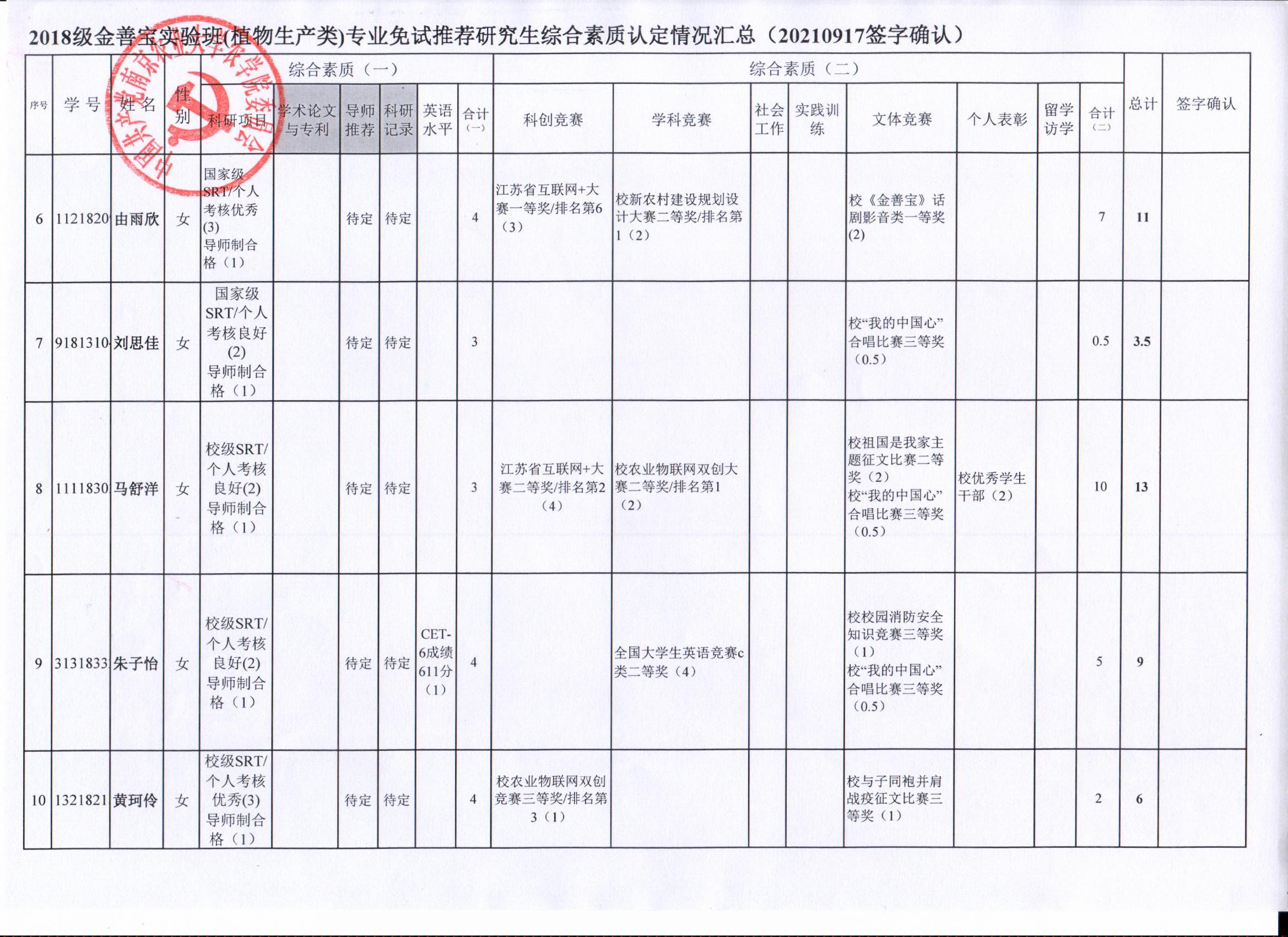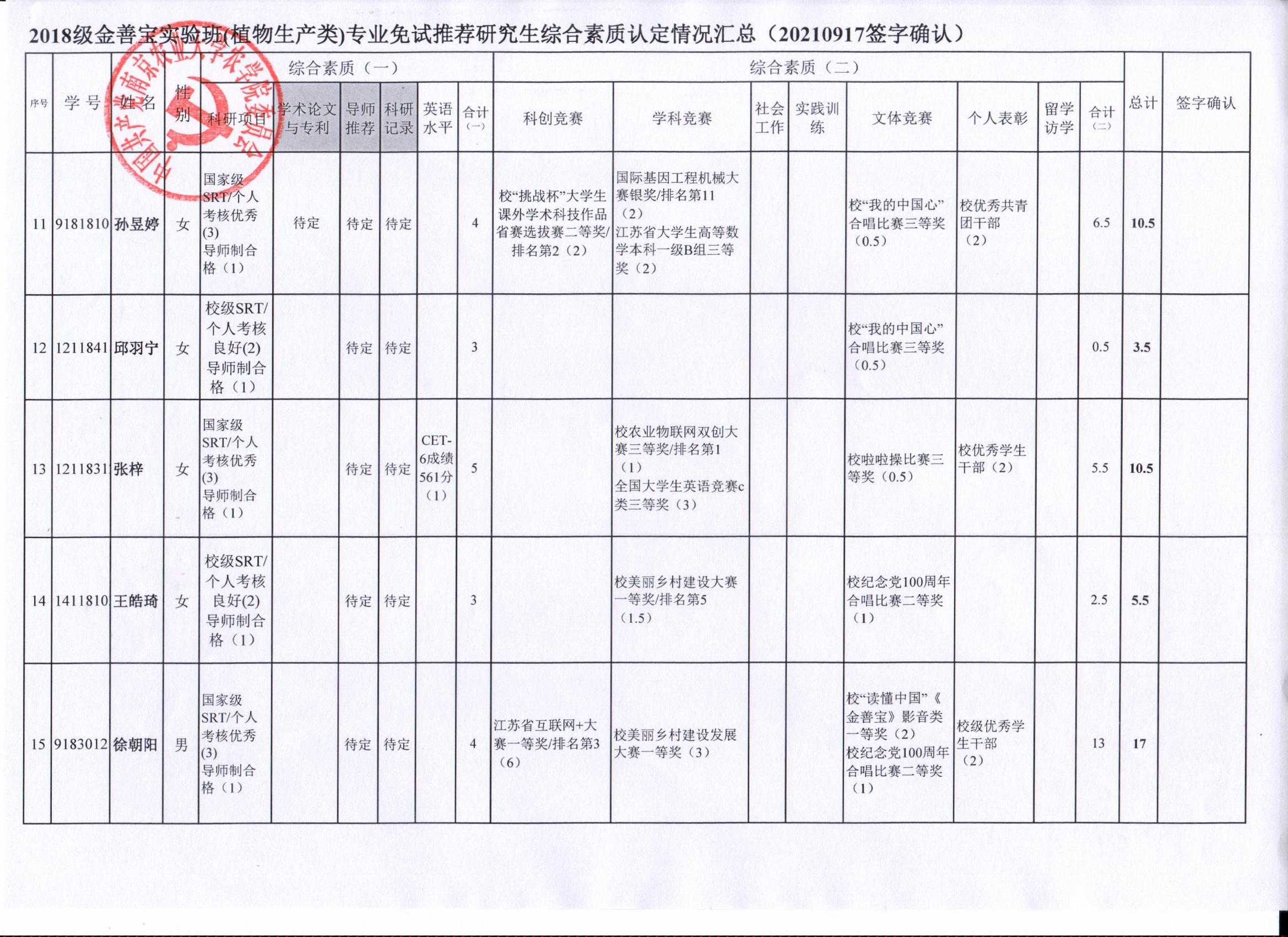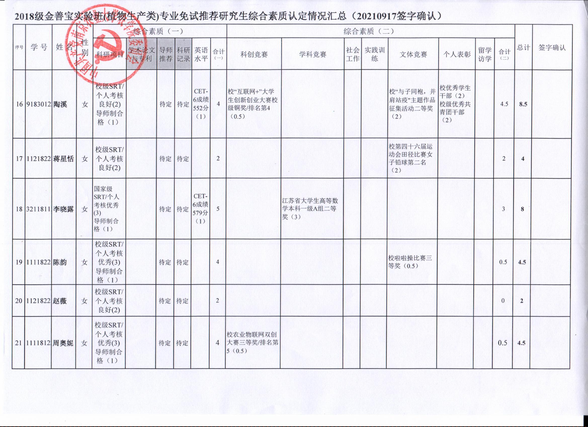 以上结果,如有疑义,请于9月24日下午17:00前,以书面形式反馈至海角社区 学生办(生科楼D1002),联系人:孙老师025-84395327。