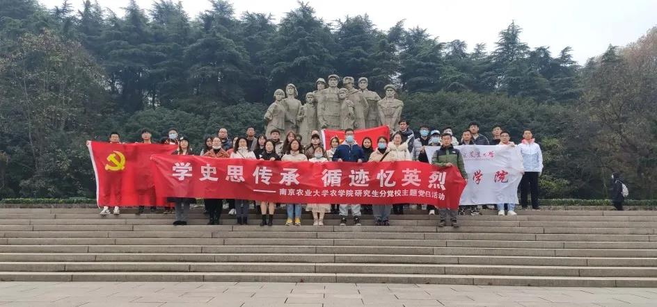 以史明志、以史为师、以史正心,为深化“四史”学习教育,缅怀革命先烈,2020年11月28日上午9点,南京农业大学海角社区 分党校启蒙班研究生前往南京雨花台烈士陵园开展了以“学史思传承,循迹忆英烈”为主题的党日活动。通过对雨花英烈事迹和精神的学习,启蒙班的同学们上了一堂鲜活生动的党性教育课。