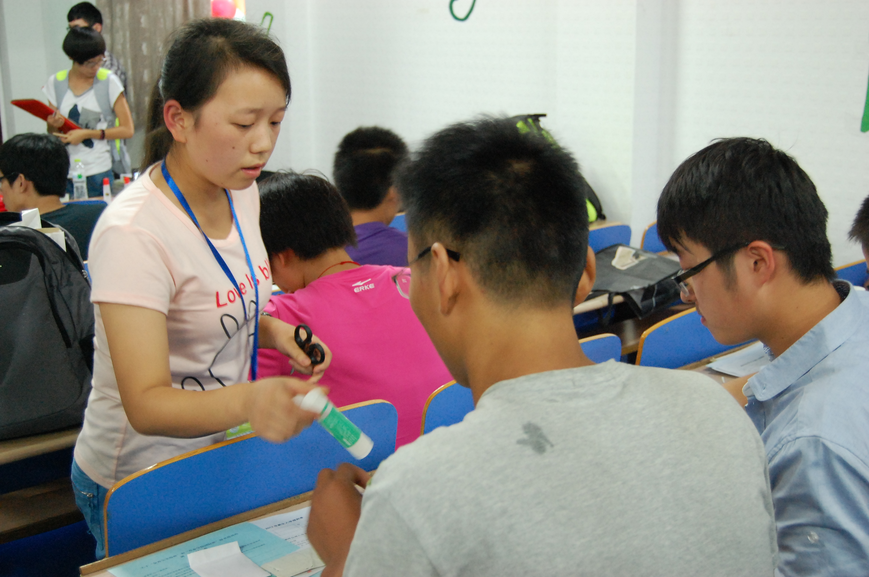 迎新的同学热情地接过家长手中的行李,将其引导至迎新会场家长休息区,并提供了饮用水。发放相关材料的同时,他们一遍遍不厌其烦地向新生及家长讲解报到注册流程,并安排人员全程陪同帮助新生办理入学手续。对于办理完入学手续的同学,工作人员便带领他们到新生宿舍,继续帮助其办理入住登记。整个过程繁琐却井井有条,细心又贴心的服务使新生和家长们感受到海角社区 大家庭的温暖关怀。